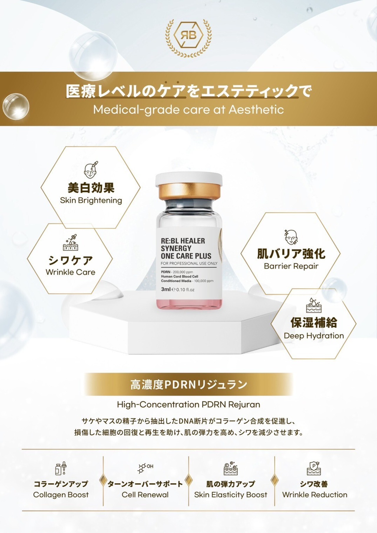 3ml×10本 美白・シワ改善成分とヒト臍帯由来幹細胞培養液、PDRNなどを高濃度かつ高配合でブレンドしたサロン専用アンプルです。細胞に必要な栄養を届け、素早い再生効果を発揮します。